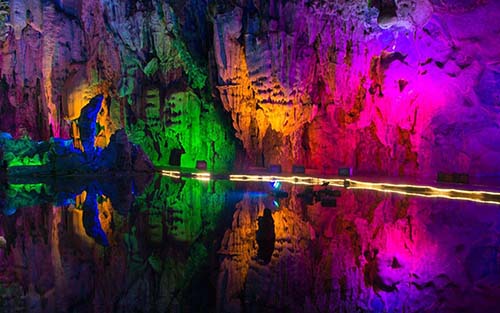 太乙洞相傳是太乙真人下凡為治理水患,造福民眾掘鑿的過(guò)水涵洞。主洞全長(zhǎng)2000余米,有支洞8條,大小景點(diǎn)100余處。這些自洞頂向下垂懸的石頭叫“鐘乳”,從地面向上生長(zhǎng)的叫“石筍”,這種奇特的景觀(guān)必須經(jīng)過(guò)漫長(zhǎng)的歲月才能孕育而成,堅(jiān)持不懈,平凡也能變卓越。